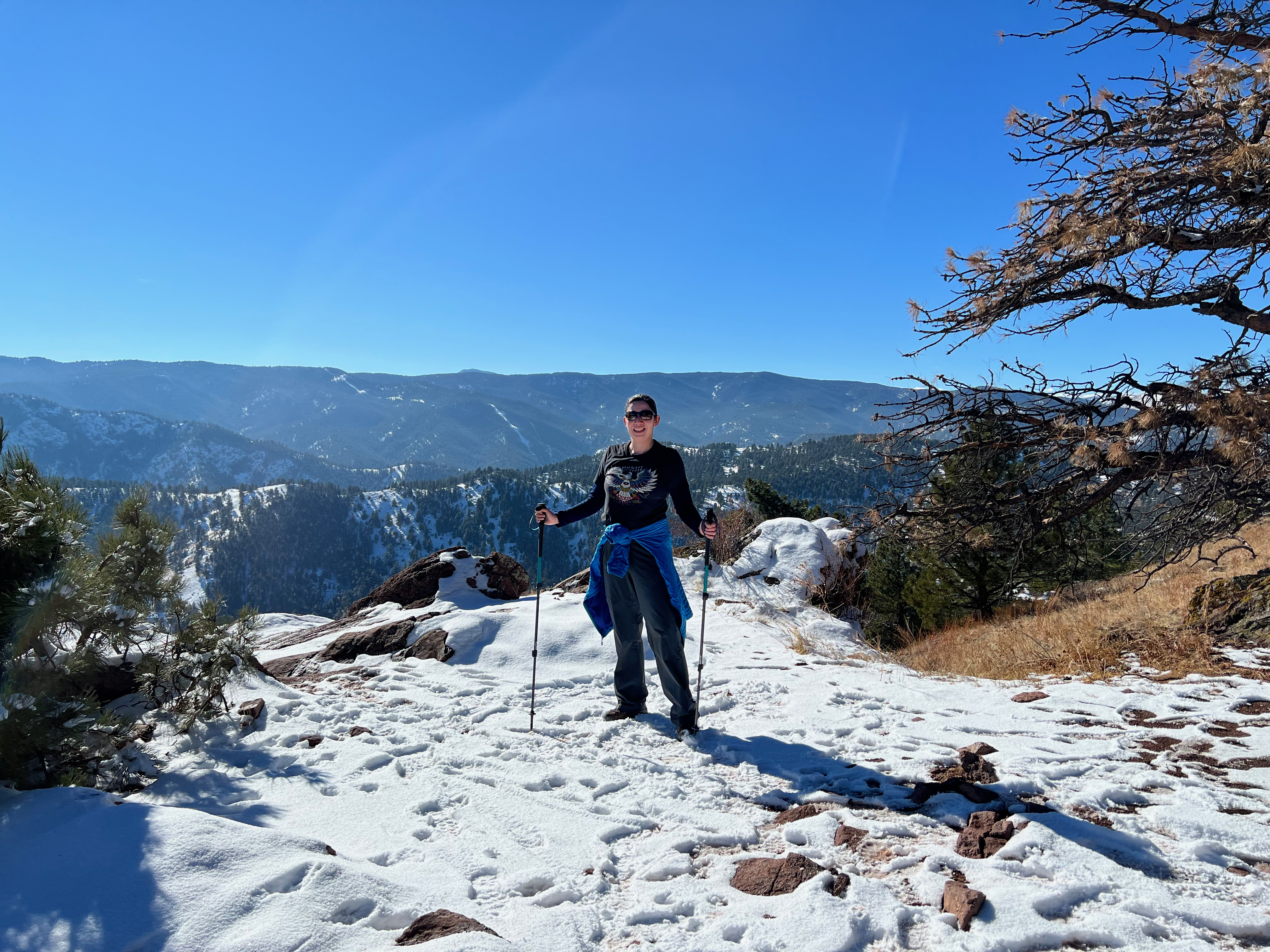 On our one full day in Boulder, we hike the Mt. Sanitas trail, a 3.2 mile loop to the summit at 1,256 feet. The first half of the trail to the summit is steep, with a good amount of rock scrambling close to the top. There’s fresh white powder on the ground, dusting the pine trees, and cool drops of condensation drip onto my head. I work up a sweat, stepping up logs and boulders as high as my hips. I’ve got flatlander’s lungs and I’m breathing hard in this high elevation. Meanwhile, locals trail run past me in light athleisure wear, barely breaking a sweat. I even see a dog with corgi legs scramble over the rocks like it’s no big deal. My hair is a damp mop on my head and I’ve peeled off my sweaty gloves, shoving them into the pockets of my puffy jacket now tied around my waist. But we make it to the top, and bask in the view of the city of Boulder laid out around us. I can never get over a good view. A change in perspective. Man, I’ve missed traveling during this damn pandemic.