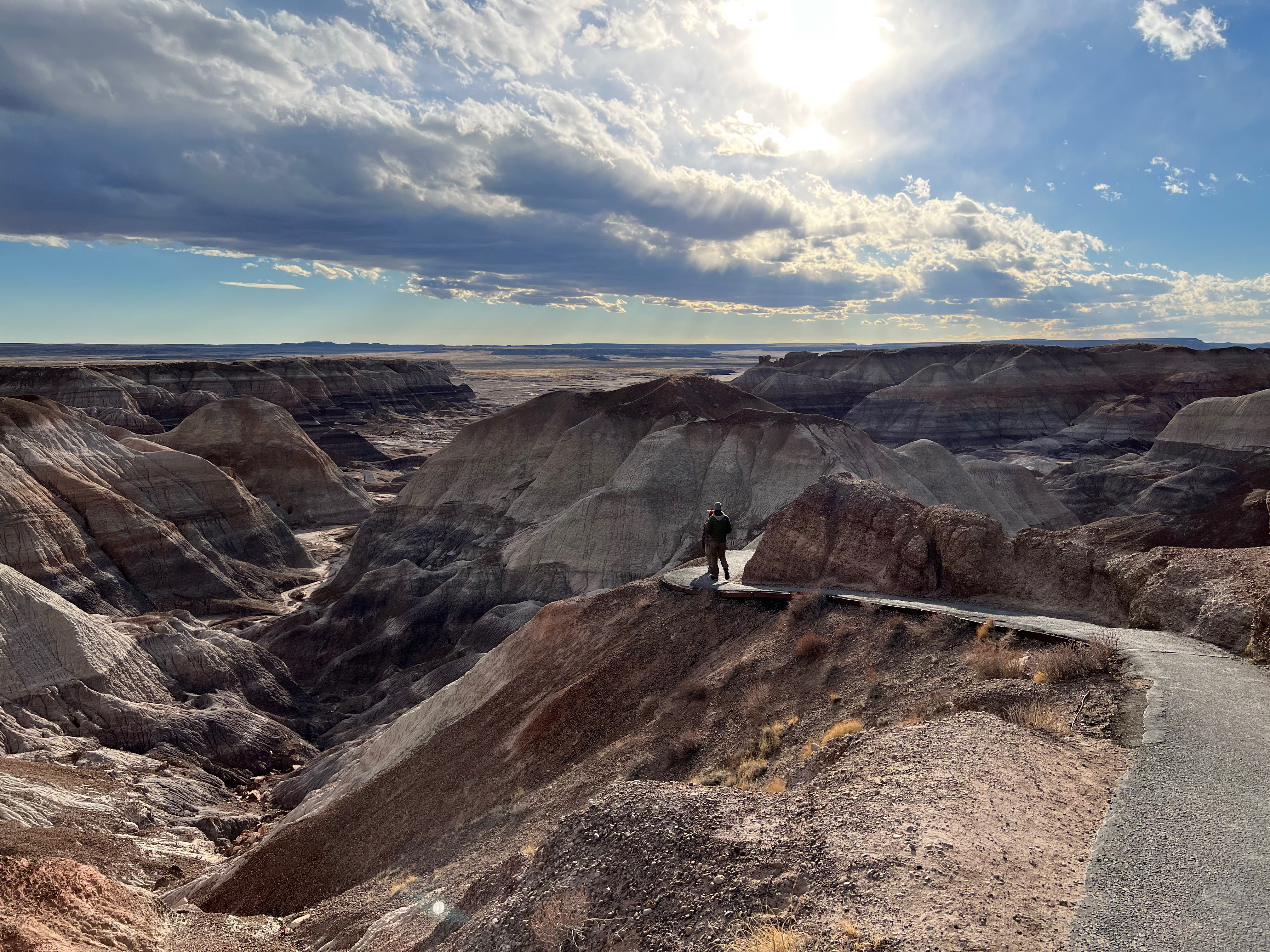 Being the group of science and nature-minded nerds that we are, we marvel at the striations and variations in the rock formations, piecing together what was once underwater back when Arizona was under an ocean. How wild that a log can still look like wood on the outside, the patterns of bark still intact, while the inside has turned into quartz after being buried in sediment and compressed by pressure then being revealed again by wind and erosion. These elements exist on an entirely different timeline than us humans in our meat bodies.