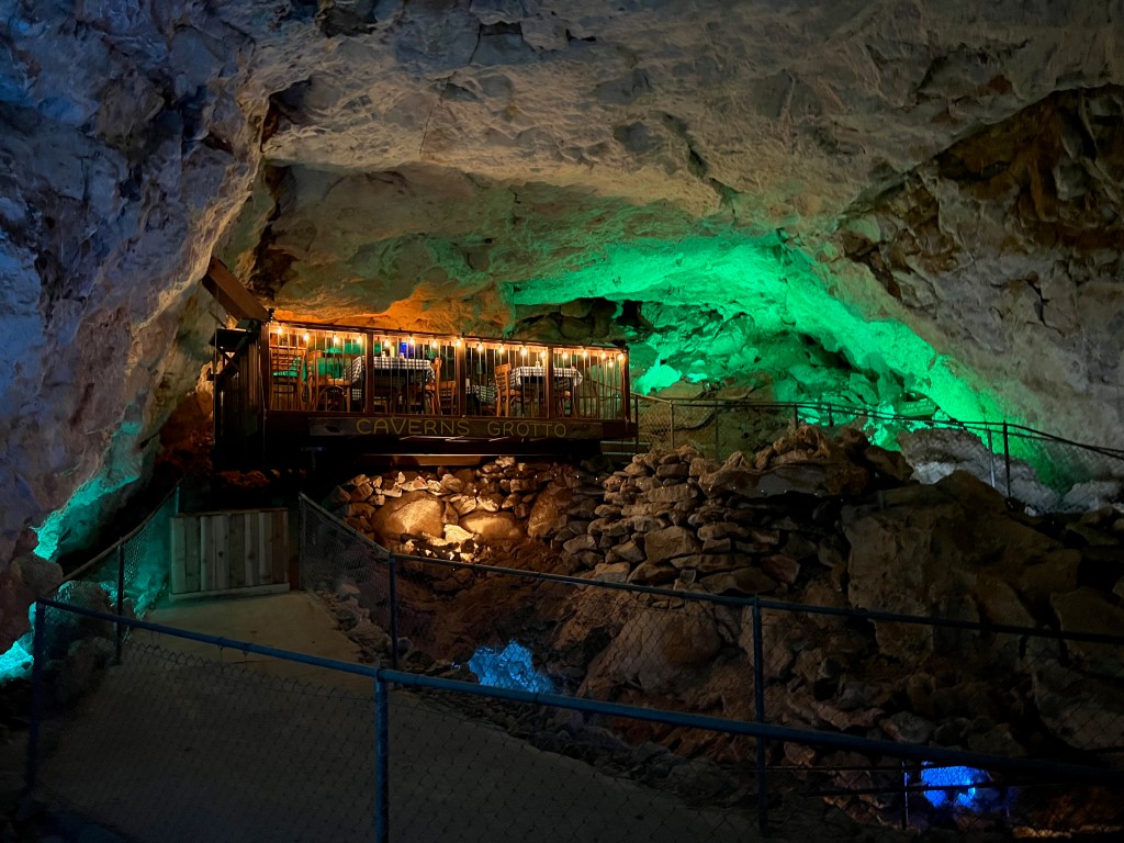 As we neared Kentucky, we stopped at a gas station to refuel and begin researching a place to stop for the night. Kurt found an USACE-run campground near a lake where all the sites looked to be waterfront, which sounded promising until we learned that it was in a dry county. I wasn’t thrilled about enduring a hot sweaty final night in the tent totally sober, so we kept searching. Nearly every campground close to Mammoth Cave was booked up. It started to look like we’d have to spend the last night of our trip in a dog-friendly Holiday Inn. We kept the booking.com listing on the proverbial back burner as we got closer to Cave City, Kentucky.