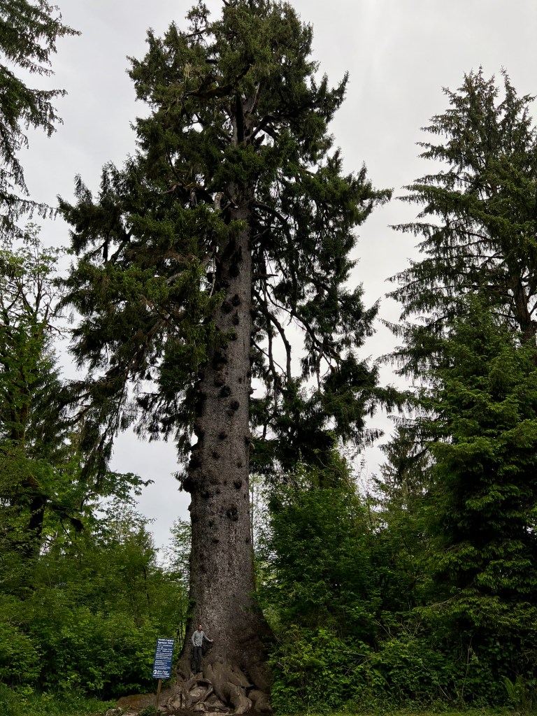 Our campsite for the night is on Lake Quinault, so we take the long drive back to the 101 on the coast, then make our way to the southwest side of Olympic where it butts up against the Quinault Reservation. On our way, we stop to see three significant trees: The Duncan Cedar (World’s Largest Western Red Cedar, 178 feet tall and 19.4-ft diameter), the Big Cedar Tree of Kalaloch (175 feet tall and estimated to be 1,000 years old), and the Quinault Giant Sitka Spruce (a whopping 58’11” circumference). If you love giant record-breaking trees, this is the place for you.