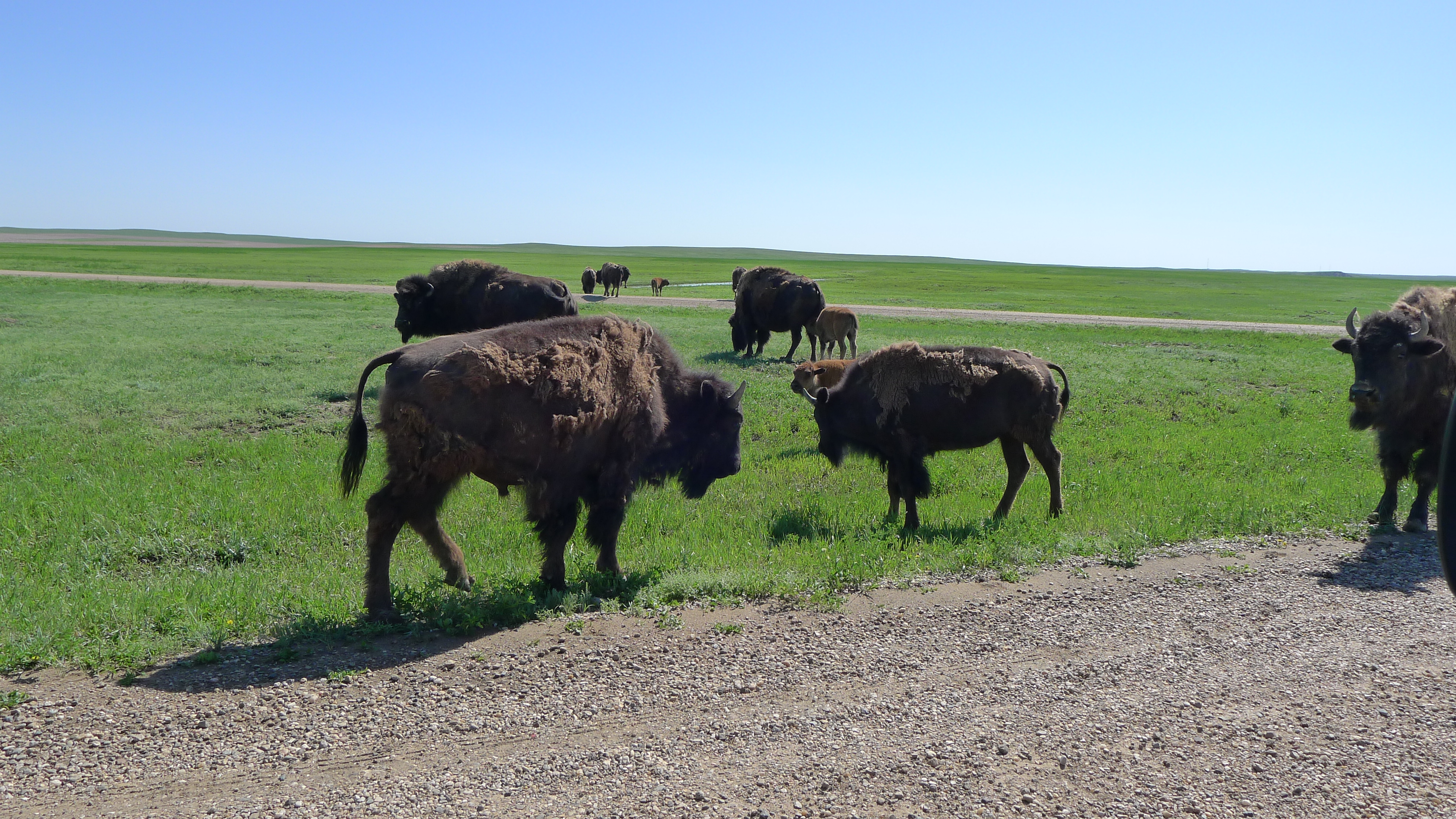 Wildlife sightings: bison and calves, pronghorns, elk, mule deer, wild turkeys