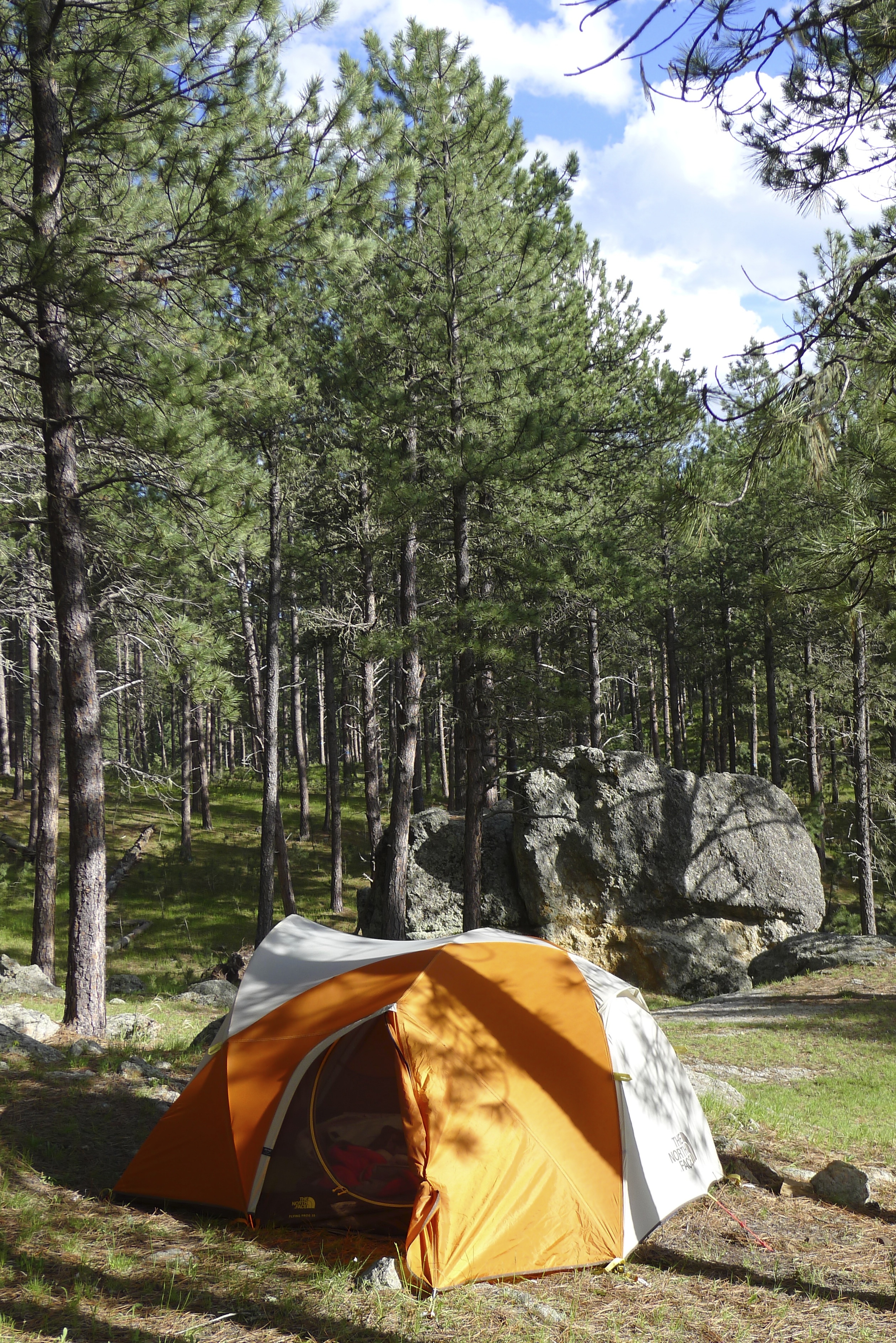 We set up camp at the Bismarck Lake campground and kicked back with a bottle of wine while reading our guidebooks. Overnight, some loud thunderstorms rolled through, but our little tent held up like a champ. Next stop: Yellowstone!