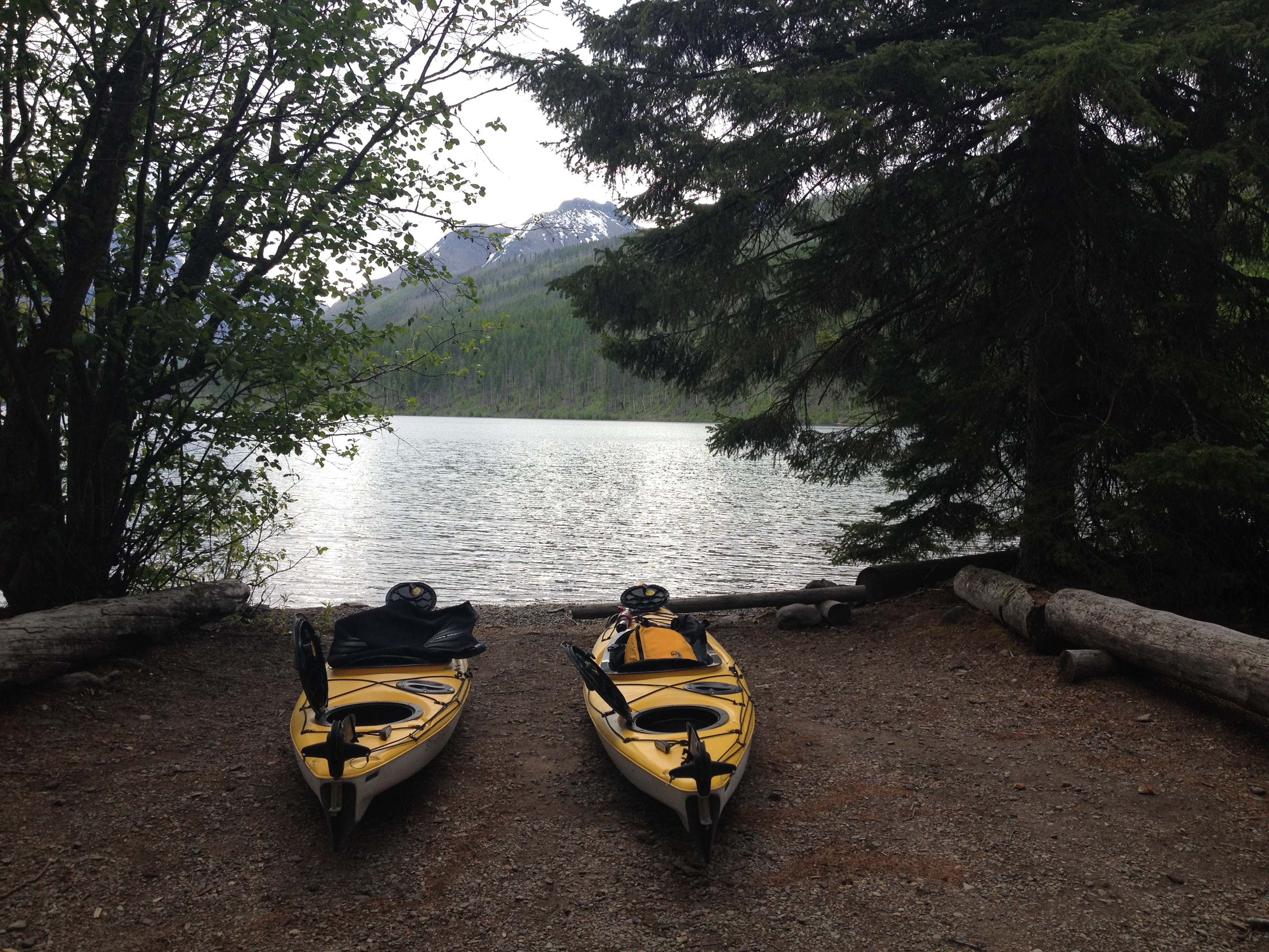 We made our bumpy way up the 40 miles of North Fork to reach Kintla Lake. The campground was open, but we only saw two other people there. Otherwise, it was just us (and about a million mosquitos). No motorized boats are allowed on Kintla, so the lake was completely calm. We immediately unloaded our kayaks and got onto the clear, inviting water.