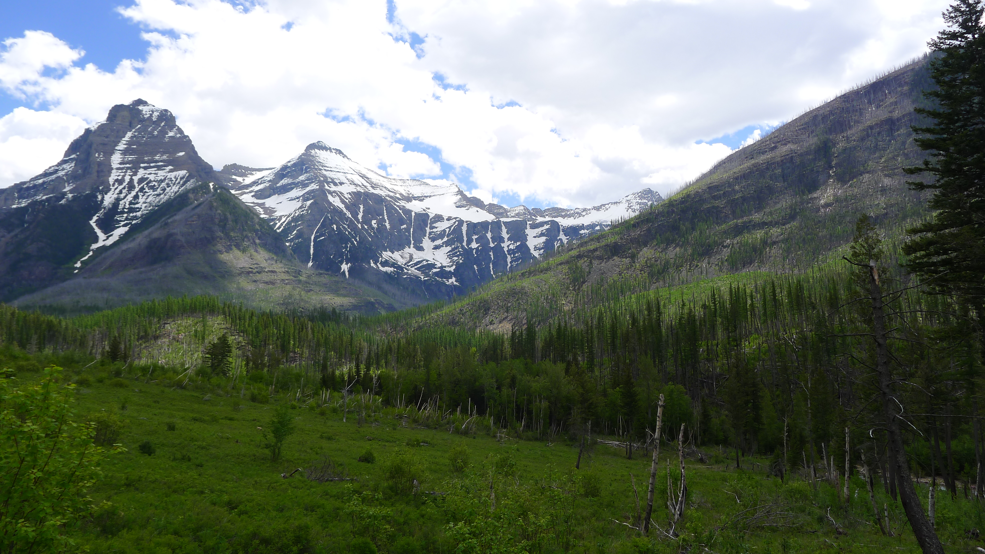 After our lunch, we said goodbye to our deer friend and started a hike towards a view of the Kintla Glacier. After a while I got tired of constantly shouting “Bear! Bear!” and began to sing any song that came to mind. By the time we reached a meadow clearing with an amazing view of the glacier, I had run through most of the pop divas (Britney, Miley, Katy, Madonna). The mountain range behind us was the last on U.S. soil; beyond them lay Canada. We took pictures and drank in the gorgeous setting before making our return trip. I worked my way through 80’s rock and Disney soundtracks. Kurt politely did not complain about my terrible singing voice, but did say “I didn’t know you knew all of those songs.”