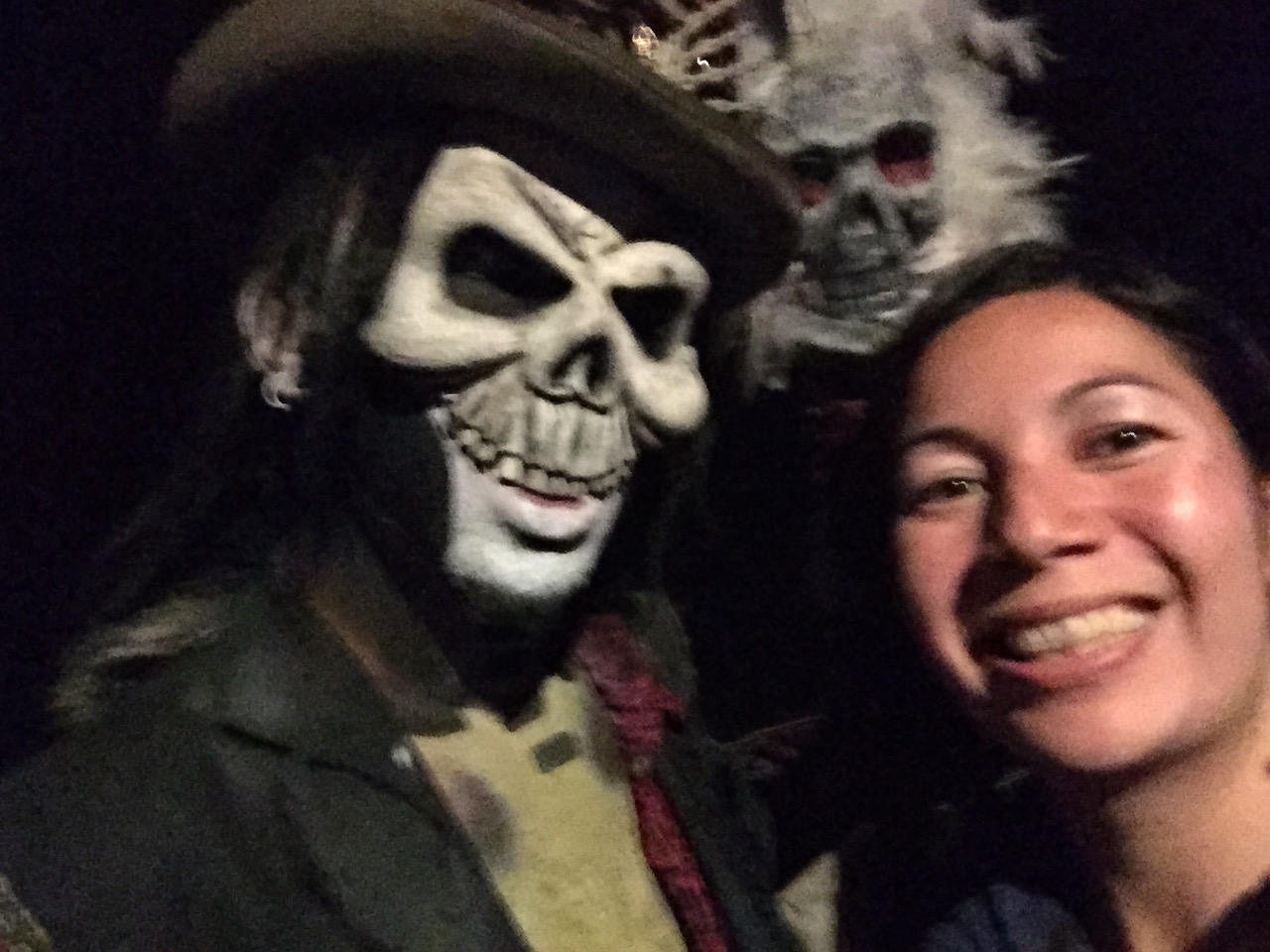Also, I visited a haunted house with my Scully and our friend. As we were driving out to its suburban location, I remembered that haunted houses can legit freak me out, plus I have terrible night vision. Death, obviously, was imminent. It didn’t help that this particular haunted house had people in costume lurking in the line area, creeping up behind you to surprise you. We finally made our way to the front of the line and were placed in a group of about 7, all of us full-grown adults, just hanging out on a Saturday night ready and willing to be chased by fake killer clowns. At first, we were near the back of our group, so we didn’t bear the brunt of most of the big jump-out-and-freak-you-out surprises. However, as we made our way through the twisting tunnels and pitch-black passageways, we began to lose people from our group one at time like an actual horror movie. I was staying strong, being brave, resolute to make it through to the end (What Would Jennifer Love Hewitt Do?). At one point we reached a fork in the tunnel quickly followed by a dead end, and the female half of the couple in front of us said turned around and said with disdain “It’s a fucking maze.” Our little group of three splintered off from them and got through quickly, but then we were alone and an easy target for all of the ghosts/monsters/theater majors. We reached a room that was completely dark except for an intermittent, blinding white strobe light. During the dark intervals, a person in all-white spandex suit snuck up right into our faces, scaring the hell out of us when the lights flashed back on. I wondered what a full 8-hour shift must be like for that guy, working all by himself in a constant strobe light-filled room peppered with terrified screams. It must be an interesting talking point on his résumé. After we reached the exit, I took a selfie with a ghoul. Overall, it was fun; I’d do it again.