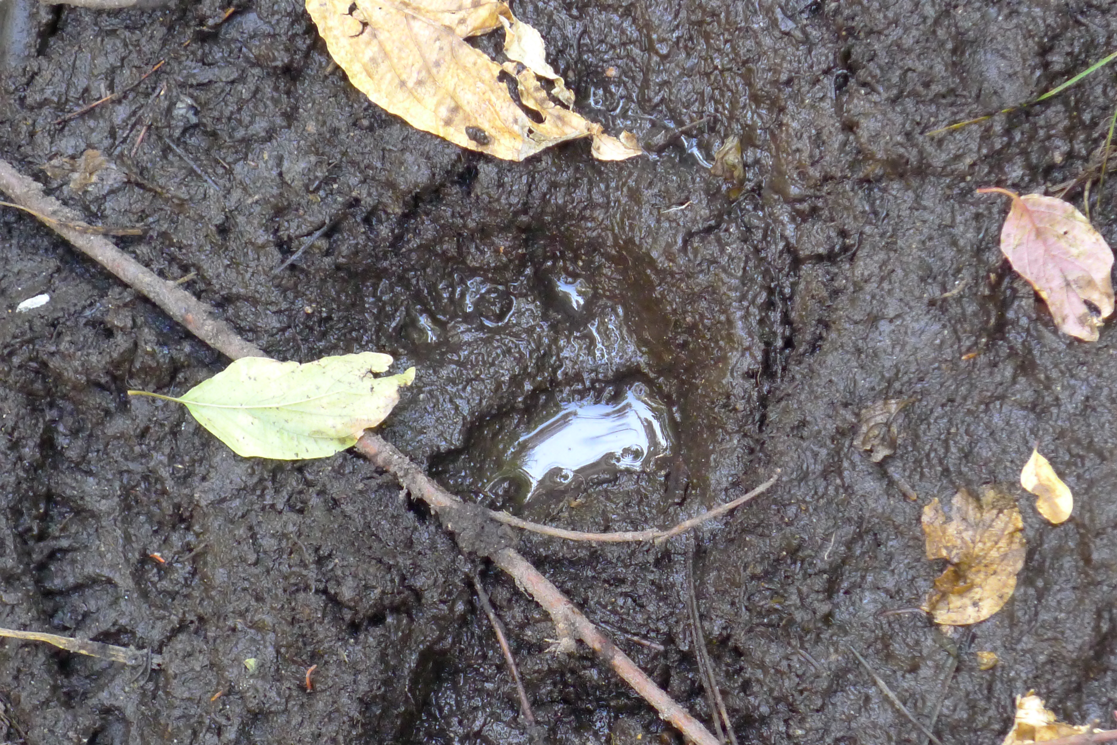 At the top of the ridge, the trail flattened out and we found ourselves in an alpine forest. “It’s the forest moon of Endor!” Kurt said. In the fresh mud, we saw a bear print and what could possibly be a mountain lion paw print. The trail meandered through a high meadow, and as we entered the deep brush we heard a crash to our right; we had startled a mule deer. It hopped away from us about 25 yards, then looked back to check us out, hanging around to nibble on grass while keeping an eye on us.