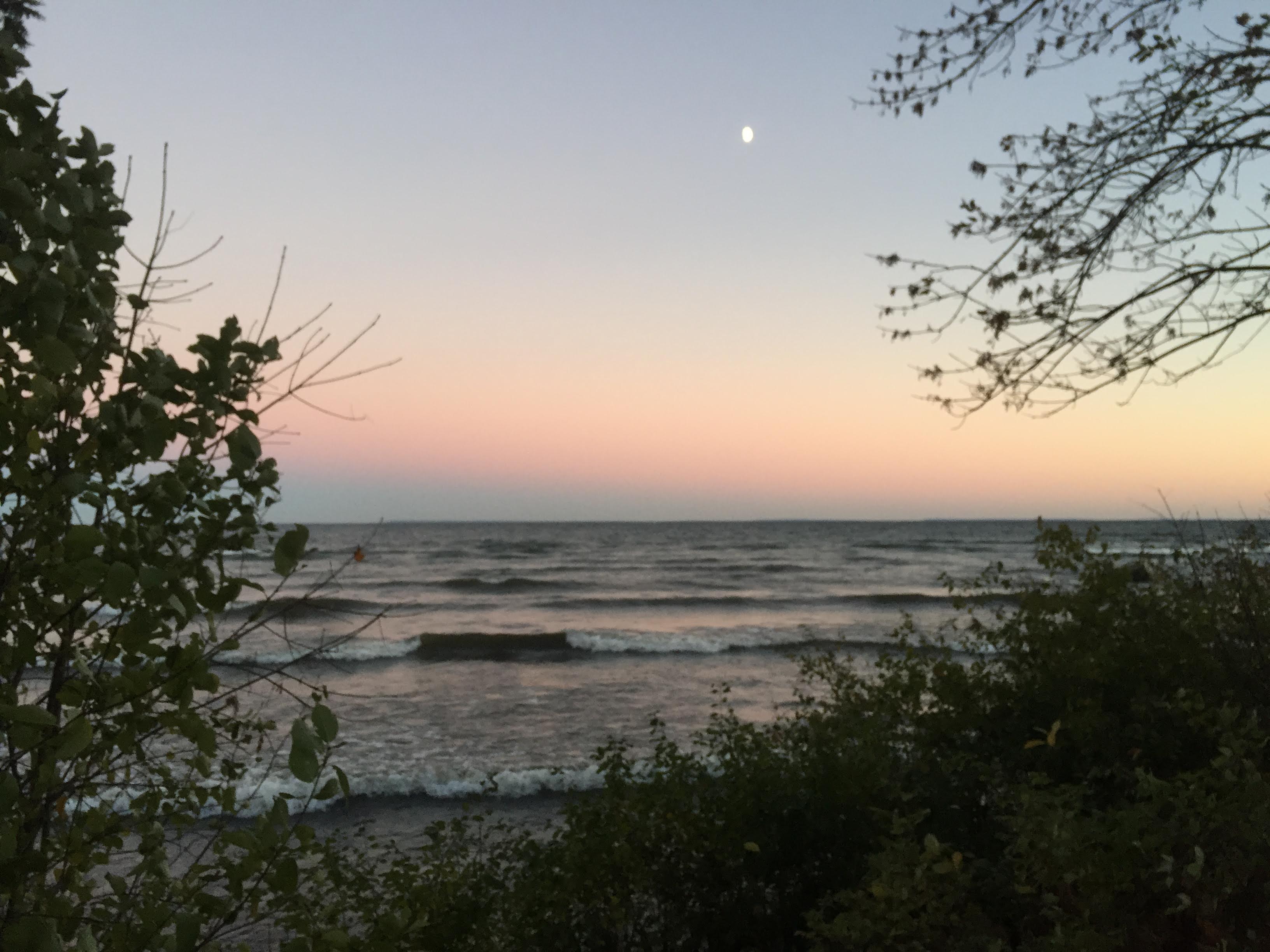 On Sunday morning, we said goodbye to our friends who were headed back home or further south. Kurt and I had additional days off, and we decided to turn our trip into a Circle Tour of Lake Michigan. Over the next few days, we visited Tahquamenon Falls, Hiawatha, Mackinaw City, Traverse City, and Manistee National Forest. We drove over the (5-mile long!!) Mackinac Bridge, visited microbreweries, hiked by waterfalls, and drank wine by campfires. But there’s one moment in particular that really stands out for me.