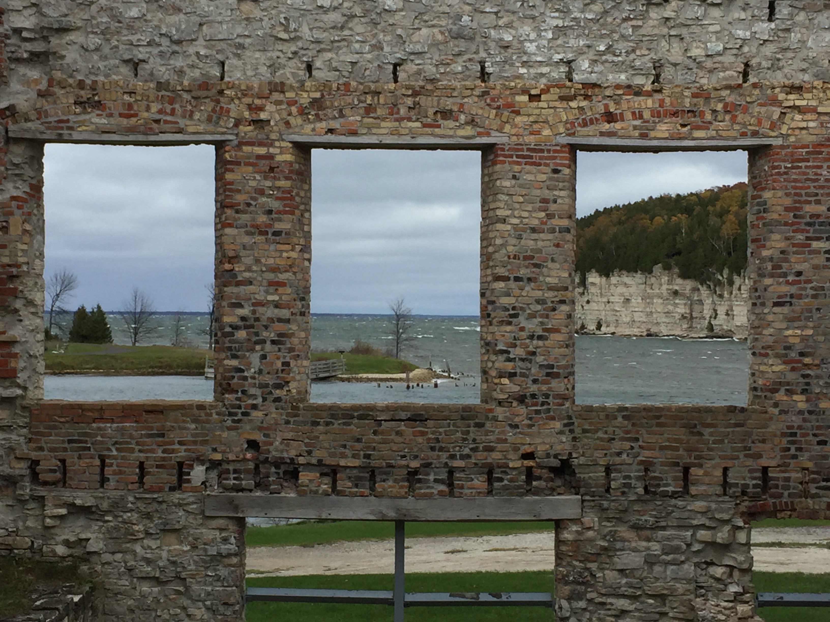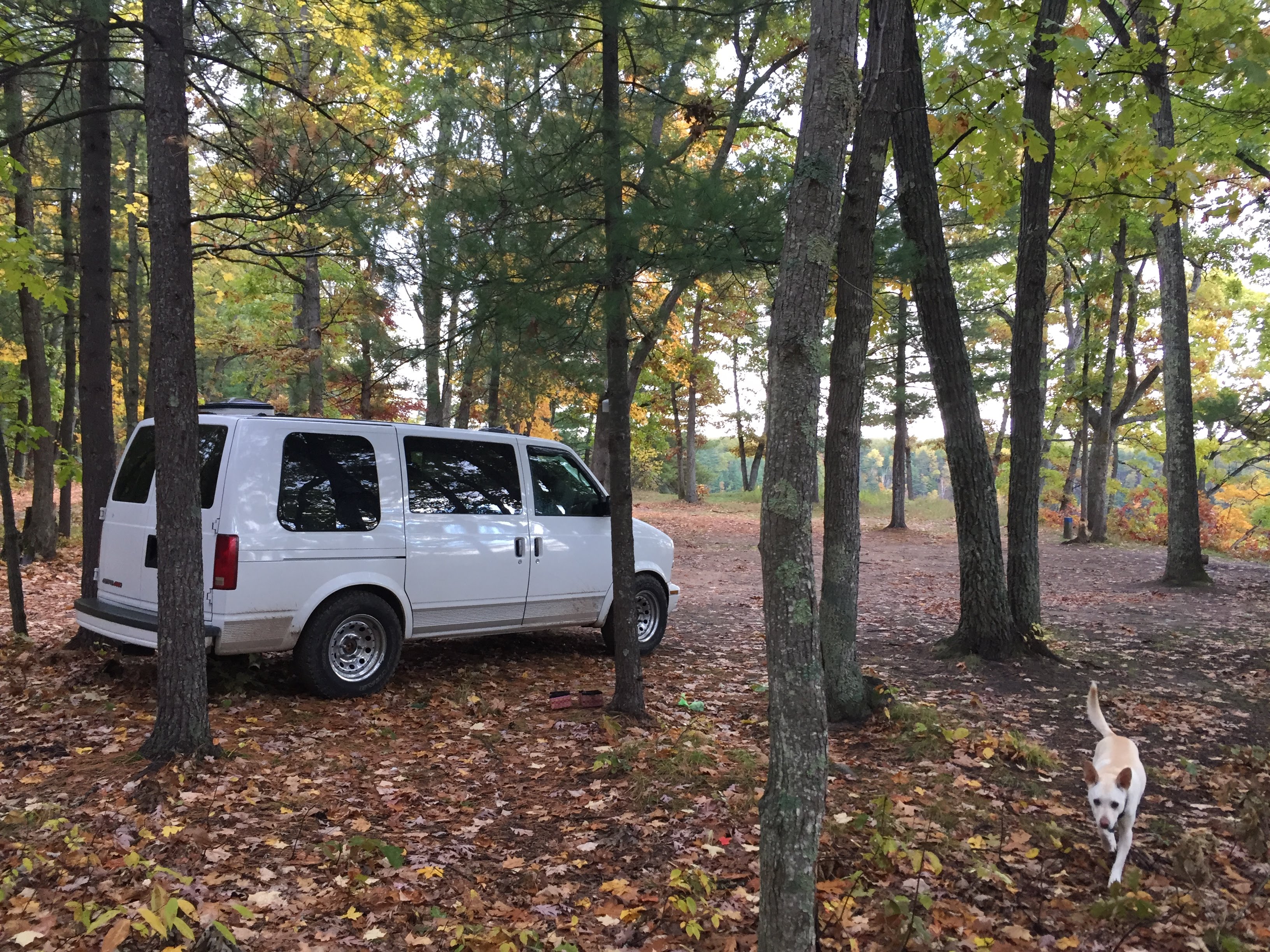 For the next few nights, we holed up on Indian Lake in Manistique. Parked next to the lake, we could see the stretch of bordering forest. In Fayette Historic State Park, we walked through the abandoned and preserved buildings of an 1800’s industrial town, then hiked through a forest bursting with fall colors.