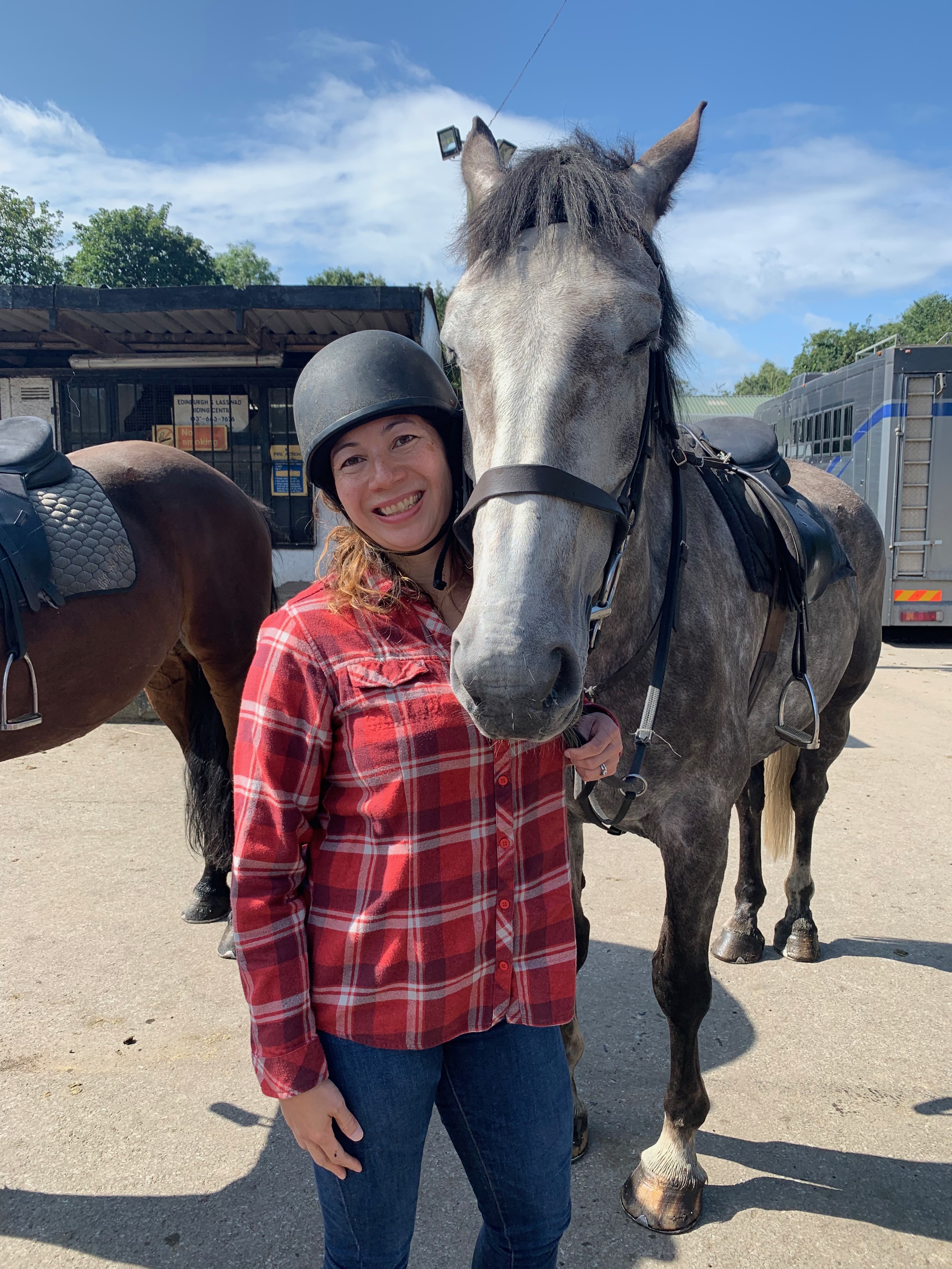 Amongst our group, we had a mix of experienced riders and beginners, and the folks at the stable matched us up with appropriate horses. I was put on a dappled gray named Oscar, and we got along swimmingly. Our guide took us on an ambling trail across a river, then through a scenic meadow and a wooded park. At one point, we rode on the road (on the left side!! I was all geeked out about that), and did some light trotting. I love going on trail rides in Europe because they use English saddles, so I get to brush up on my posting skills from junior high. Everyone did a good job, and nobody died!