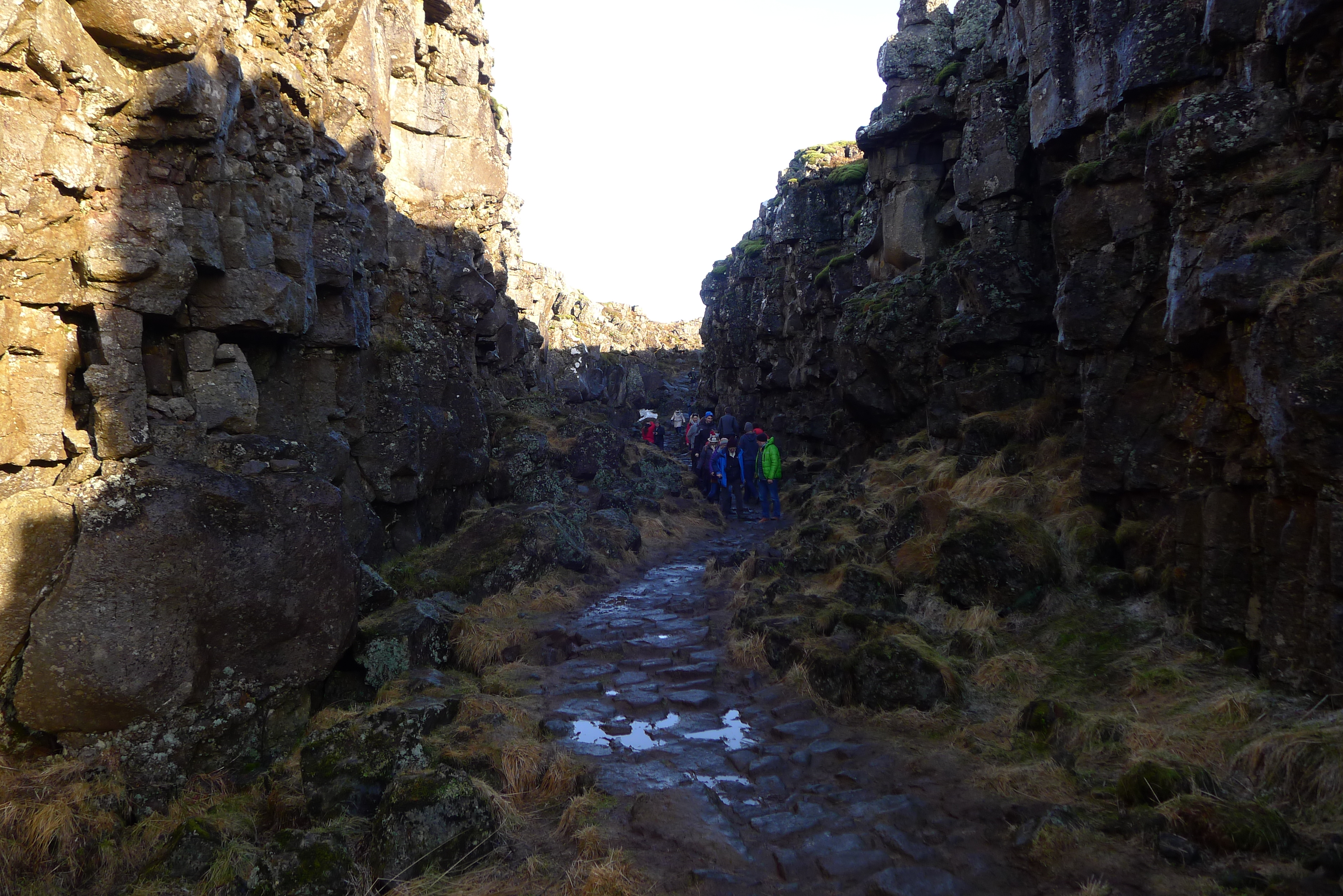 Þingvellir National Park is part of the Golden Circle and a popular tourist stop for the excellent reason that it is majestically, stunningly beautiful. It’s also the location for the path to the Eyrie and the Bloody Gate. IRL, the canyon between opposing walls of mossy rocks is the spot where the North American and Eurasian tectonic plates separate. There’s also random waterfalls because Iceland. We spent a lot of time in this gorgeous spot, taking photos and enjoying a rare February moment of bright sunshine.