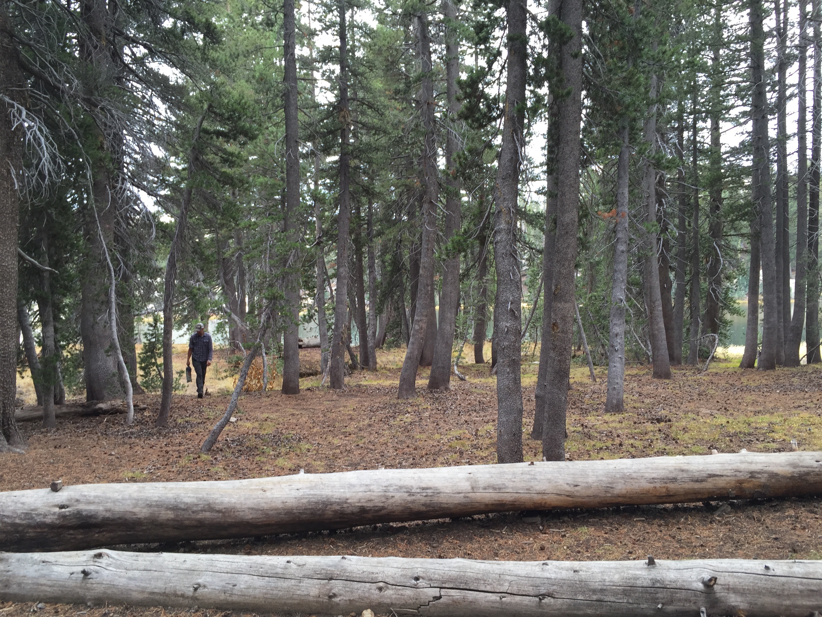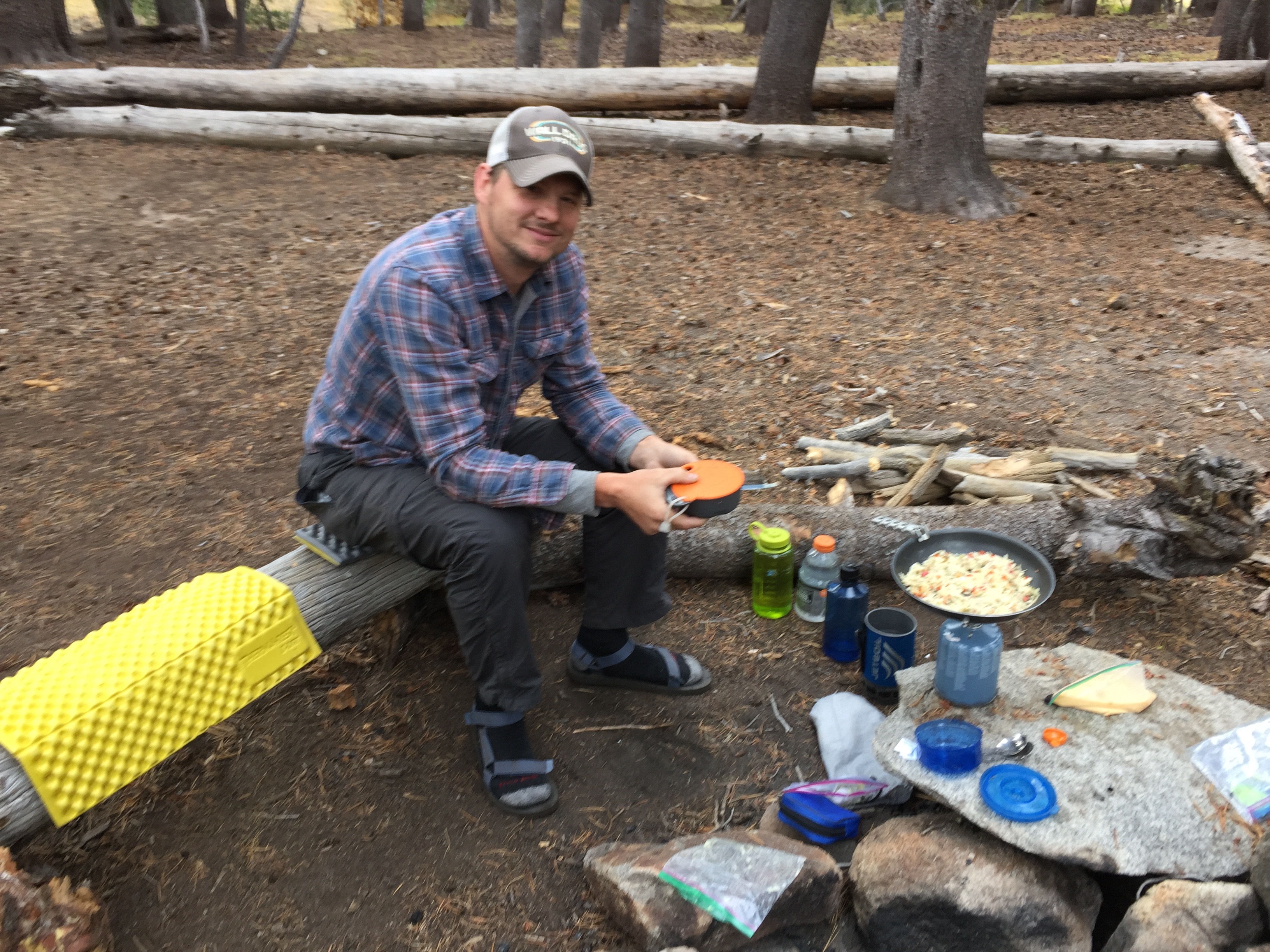 We made a fire as the sun set, then heated up our dinner of Ramen noodles with added powdered eggs, dehydrated veggies and chicken. It was a cloudy night, the moon completely obscured. Now, I never get afraid of the thought of ghosts or monsters while camping; there’s too many real, practical things to fear like wildlife, lightning, hantavirus, flash floods, etc. I don’t know what it was about that night–maybe the initial unsettling discovery of the hair tangled on that tree, or the lack of any moonlight. But for whatever reason, the thought of The Blair Witch Project crossed my mind. And of course once I tried to shake it, it was all I could think about. Just beyond the fire, the forest was enveloped in velvety darkness. When I turned on my headlamp, a beam would illuminate only the handful of trees closest to us, the light dissipating weakly into the black forest. Once I accidentally turned on my headlamp on the strobe setting, and the intermittent flashes of light on the trees, then pitch darkness, made me think of Twin Peaks: Fire Walk with Me, which was even more unsettling. That night, I burrowed deep into my sleeping bag like a dog relying on its thundershirt for comfort and security.