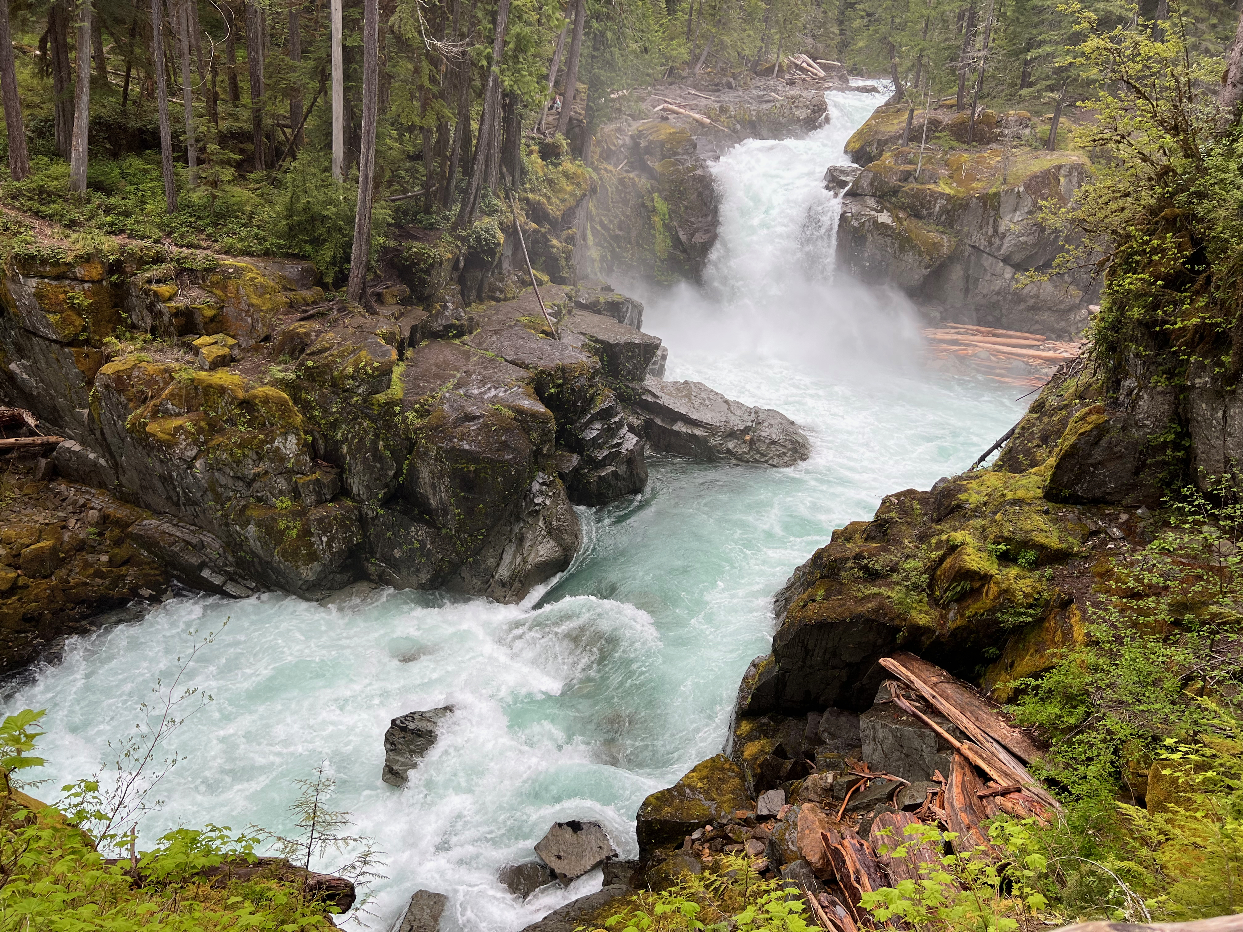 We pull into the Silver Springs campgrounds (yes, I had Fleetwood Mac in my head the whole time), which are half-empty, a stark difference from the fully booked sites in Olympic. Our site is directly next to the rushing White River. It’s a gorgeous view but unfortunately, we don’t get to sit outside and enjoy it very much, as it’s gushing rain. Kurt and I sit inside the Kung Fu at the table and have an indoor dinner and cocktail hour. We even figure out a way to convert the table to a bed without having to open the doors (mostly consisting of me tucking myself into the front seat hugging the cushions until handing them back to Kurt to put back onto the opened wood platform. We spend our last night of van camping listening to the rain and the river.