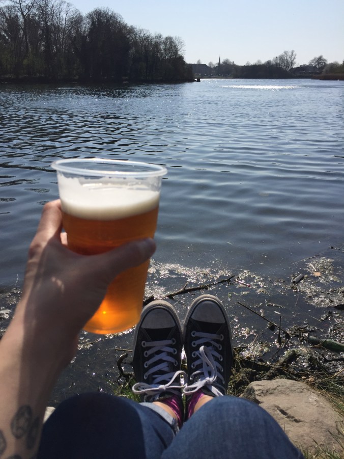 We got a second round of beers then took a walk around until we came upon a large pond. The banks were lined with people relaxing, smoking, drinking, and enjoying the warm sunshine. Someone had a jam box playing music. We sat in the grass, watching swans swim in the sun-dappled water. Denmark, I’m in love with you.