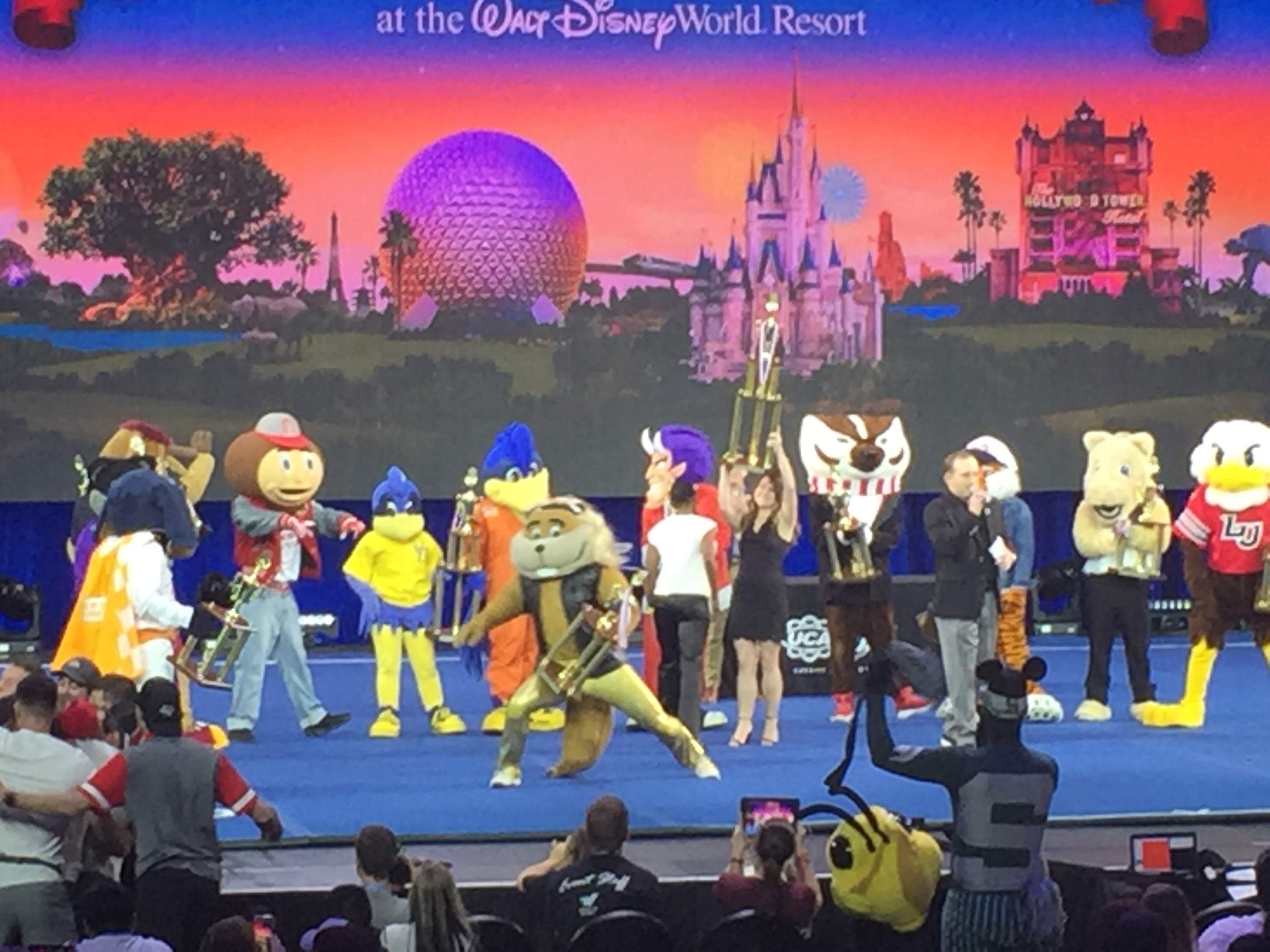 With our day passes, we were able to move around the grounds to check out various parts of the competition. We watched Division I and II Girls and Coed Cheerleading, Dance (jazz, hip hop, classical), and even a Mascot contest. Chip the Buffalo won my heart by twerking then lying down and refusing to leave the stage.