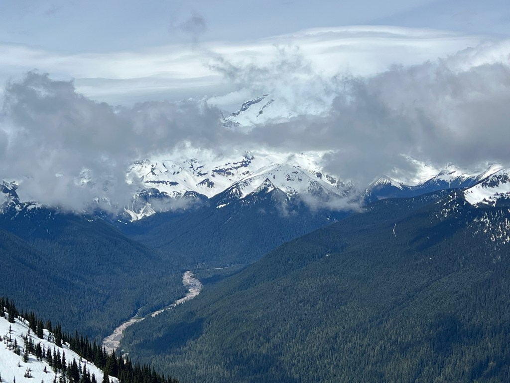 Have I ever mentioned I’m terrified of heights? Probably once or twice? The gondola is an enclosed glass cube with two bench seats, and I manage to stay pretty calm during our 2,400-ft vertical ascent. At the summit, we’re greeted by a view of Mount Rainier through some wispy cloud coverage. Victory! The wind is whipping our hair around and I am extremely sketched out by the lack of railings around the brick walkway, but we get our summit photos then boot-scoot-boogie over to the restaurant at the top of the mountain for breakfast. We’re seated at a window facing Mt. Rainier so I get to stare at it to my heart’s content as I have my coffee and BLT. I live in Illinois; I’m going to savor this moment.
