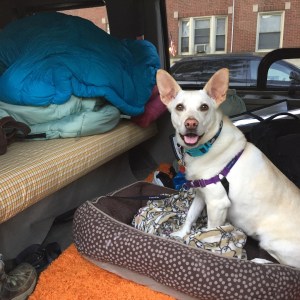 Kurt and I, plus our dog River, packed up our Chevy Astrovan for a week-long road trip to Maine. We spent 12 hours on the road, ending up in the Finger Lakes National Forest in New York to spend our first night in the van. The sky had already grown dark as we reached the campground, and since the only available site was a walk-in, we ended up sleeping in the parking lot. It was a warm night, 80 degrees and sticky. We pulled down our window shades and slept on top of our sleeping bags with the roof fan cranking.