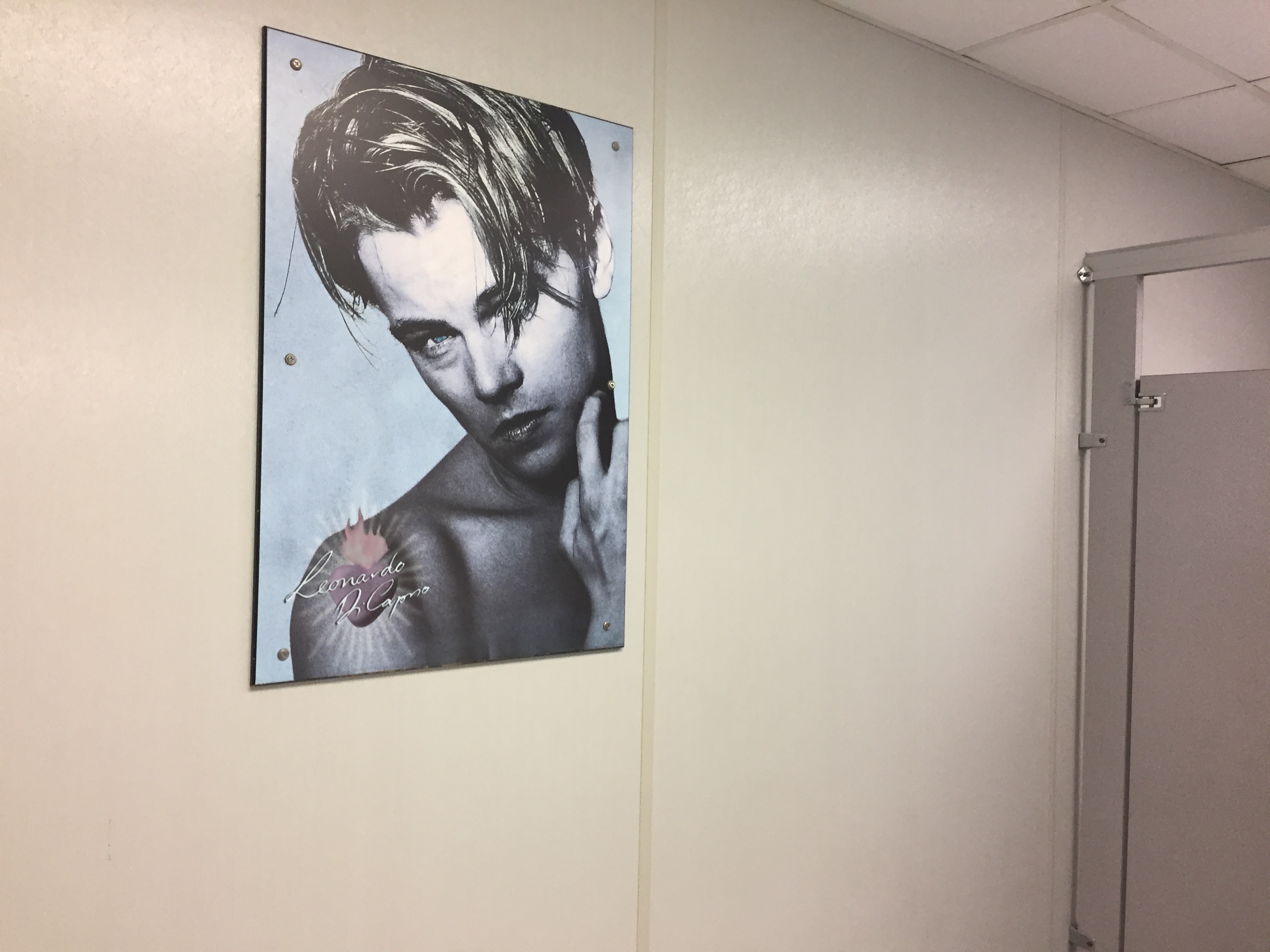We got an early start for our drive home, leaving the Airbnb at 7 a.m., flying through Maine and New Hampshire, then making a quick lunch stop in Massachusetts. Another state first for me! A friend of mine and I once tried to define what counts as having been to a state–my personal rule is that layovers don’t count unless you leave the airport, and driving through counts as long as you stop at some point and your feet hit the ground. We reached Cleveland around 7 p.m., where we spent the night with our good friend Becky at her house and hung out with her adorable son, dogs, and foster cat. On Monday, we drove the final stretch back to Chicago and it was pretty uneventful except for one magical moment. The backstory: in 2009, I drove to New York City with my sister to help her make a cross-country move. We left Chicago in a rental car packed to the brim at around midnight. By the time we reached Ohio, we were cracked out on coffee and energy drinks, and made a rest stop at a gas station. We were both shocked and delighted to find a very random poster of Romeo + Juliet-era Leonardo DiCaprio mounted on the wall in the women’s restroom. Because we were so tired, the memory of it seemed surreal, like perhaps our dreams were incepted by the same Tiger Beat editor. Years passed; I’ve made the Chicago-to-East-Coast drive multiple times since, and never came across that poster again….UNTIL NOW. When I walked into the women’s restroom and locked eyes with Leo’s baby blues, I died. I had stumbled across the same mirage in the desert, that magical Brigadoon. I texted my sister immediately and her reaction was as expected: “OMG!!!!!!!!” I asked Kurt if there was a matching Claire Danes-as-Juliet poster in the men’s room, but he said no. Must’ve been sold separately.